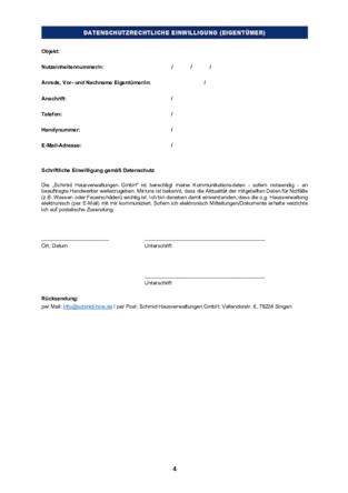 Informationen zu unseren Datenschutzpraktiken und unsere Verpflichtung zum Schutz Ihrer Privatsphäre finden Sie in unseren Datenschutzbestimmungen. Indem Sie unten auf „senden“ klicken, stimmen Sie zu, dass die Schmid Hausverwaltungen GmbH die oben angegebenen persönlichen Daten speichert und verarbeitet, um Ihnen die angeforderten Inhalte bereitzustellen.